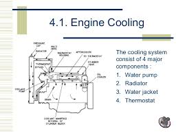 Cooling system of diesel engine. When the engine stops and cools the valve closes again. The temperature of the burning gases in the engine cylinder reaches up to 1500 to 2000C which is above the melting point of the material of the cylinder body and head of the engine. Such system includes water pump radiator cooling fan thermostat water jacket in engine block and cylinder head and other attachments.